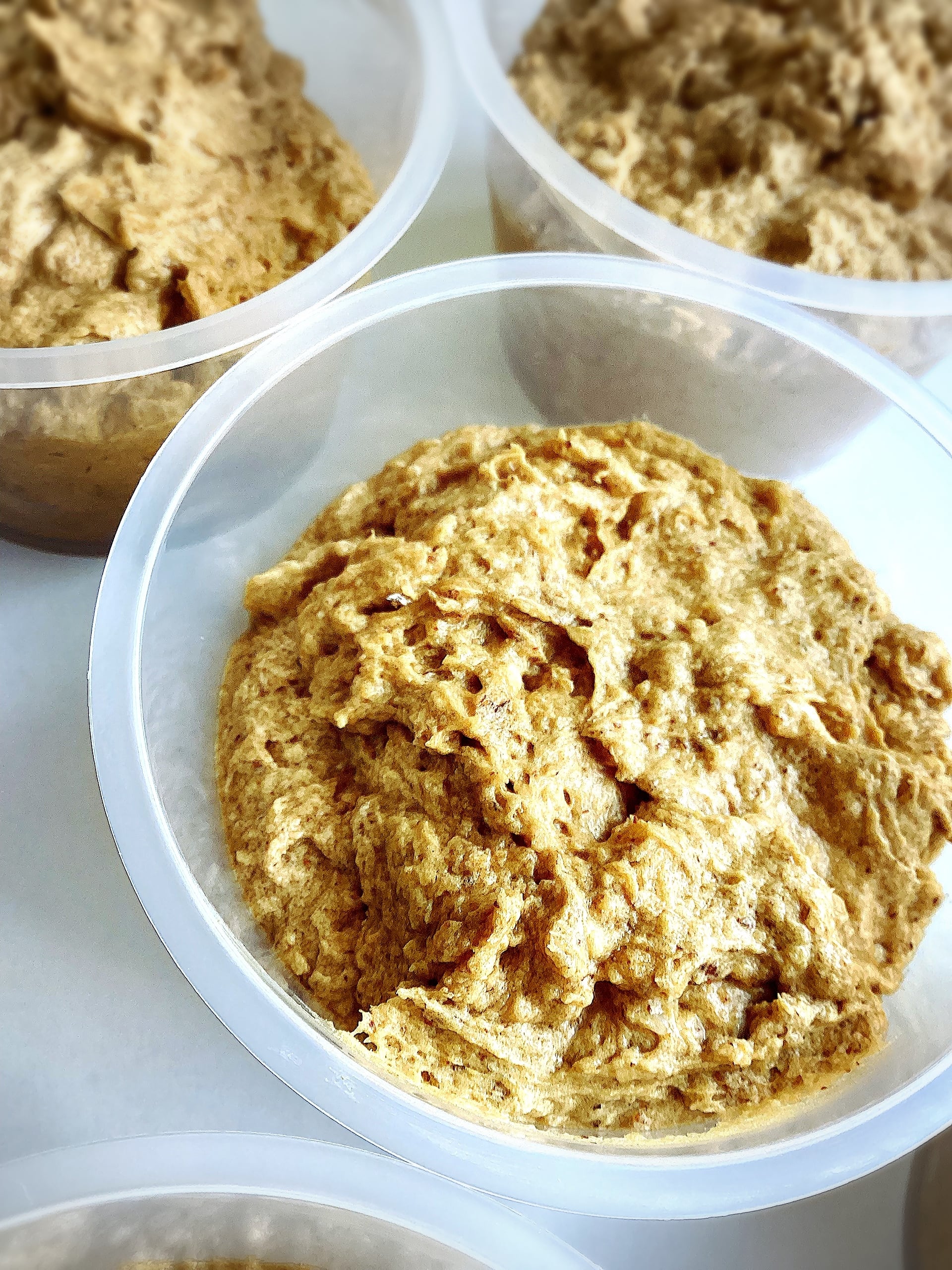 (冷たいミルクや豆乳に混ぜる時は、少量のミルクや豆乳を温め、アーモンドバターをよく溶かしてペースト状にしてから少しずつ冷たいミルクや豆乳で伸ばしてください。)